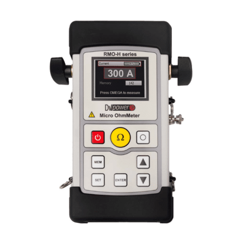 The RMO-H micro ohmmeters are ideal for a number of applications for contact resistance measurements of non-inductive test objects. Typical applications are testing a circuit breakers and disconnecting switches, high-current bus bar joints, cable splices, welding joints, etc. The set is equipped with the thermal and overcurrent protection. The RMO-H has a very high ability to cancel electrostatic and electro-magnetic interference in HV electric fields. This is achieved by very efficient filtration utilizing a proprietary hardware and software. Features: • Measuring range: 0,1 μΩ – 3000 mΩ • Resolution: 0,1 μΩ • Typical accuracy: ± (0,1 % rdg + 0,1 % FS) up to 1Ω range • Handheld, only 0,95 kg (2.1 lbs) weight • IP54 mechanical protection rating • Designed to make multiple measurements and full day’s work of testing without a battery recharge • Safe testing in Both Sides Grounded (BSG) conditions • 1 meter cables