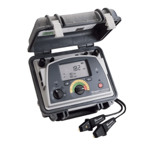 The Megger DLRO10HD ohmmeter combines ultimate simplicity of operation with a rugged IP65 case and is designed for stable ground and bench operation. The unit is powered from either its rechargeable battery or line power making it suitable for continuous testing in production line/repetitive use environments. Rotary switch controls are simple and easy to operate in all weather conditions and with gloved hands. A large, clear, backlit LCD display is easy to read from a distance. Features: • Accuracy ±0.2% ±20 mΩ • Battery Type 6 V, 7Ah sealed lead acid • 90 – 264 V, 50-60 Hz • Weight 6.7 kg • Safety rating In accordance with IEC61010-1, CATIII 300 V when used with DH7 leads • Maximum lead resistance 100 mΩ total for 10 A operation irrespective of battery condition.