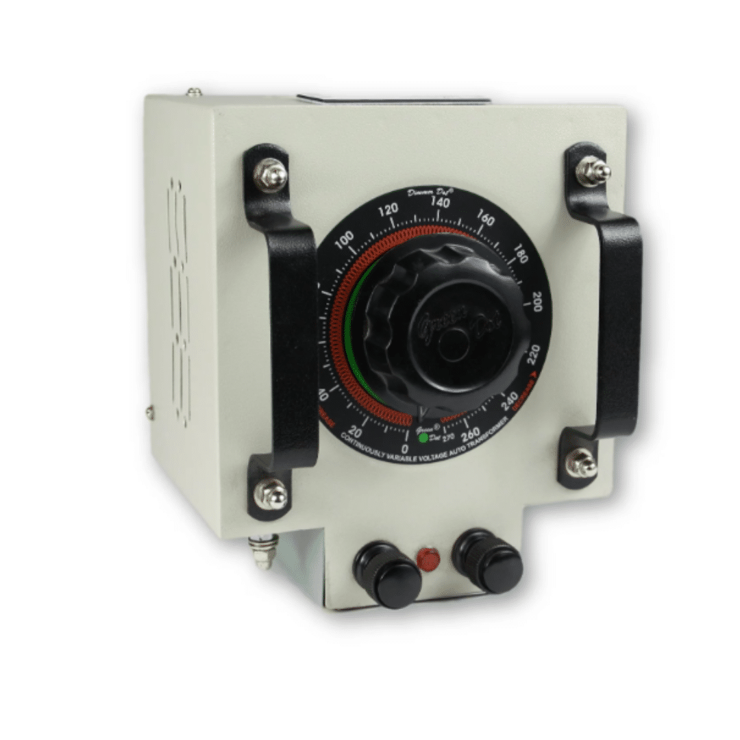 A variable auto transformer provides continuously adjustable AC voltage. In it’s Auto transformer form it is an efficient, reliable method of controlling AC voltage from zero to line voltage by amplitude modulation of the AC waveform. Since the current, power, heat, light and motor speed are further functions of the voltage, the Dimmer Dot Variable Transformer finds its varied use, but is not designed to provide AC mains isolation.